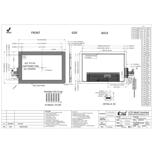 Model Number : LMT080FH002U-DC001